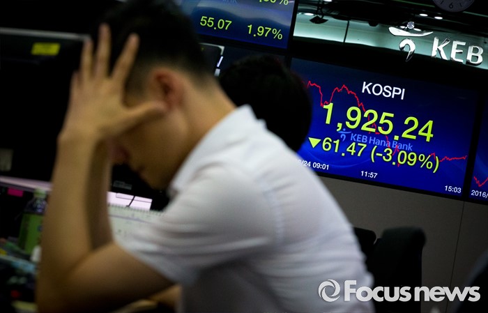 (서울=포커스뉴스) 코스피와 코스닥이 브렉시트 확정에 나란히 폭락한 24일 오후 서울 중구 KEB 하나은행 딜링룸에서 딜러들이 분주하게 업무를 보고 있다. 이날 코스피는 전거래일보다 61.47포인트(3.09%) 내린 1925.24에 장을 마감하며 4년여 만에 최대 낙폭 수준을 기록했다.