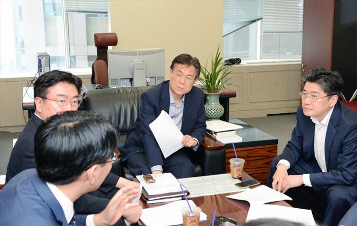 (서울=포커스뉴스) 이관섭 산업통상자원부 1차관이 24일 서울 무역보험공사 회의실과 세종시 산업부 영상회의실에서 브렉시트 대응 실물경제상황 긴급 점검회의를 갖고 브렉시트가 우리나라의 수출, 투자, 에너지 등 각 부문에 미칠 영향을 점검하고 향후 대응방안을 논의하고 있다. <사진제공=산업통상자원부>