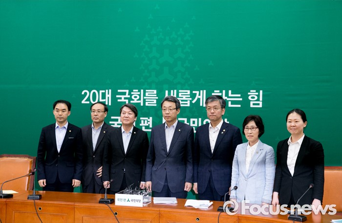 (서울=포커스뉴스) 안철수(왼쪽 세번째) 국민의당 상임공동대표, 김성식(왼쪽 네번째) 정책위의장과 최상목(오른쪽 세번째) 기획재정부 1차관 등 의원들이 24일 오후 서울 여의도 국회에서 브렉시트(Brexit) 대책회의에 앞서 취재진을 향해 포즈를 취하고 있다.