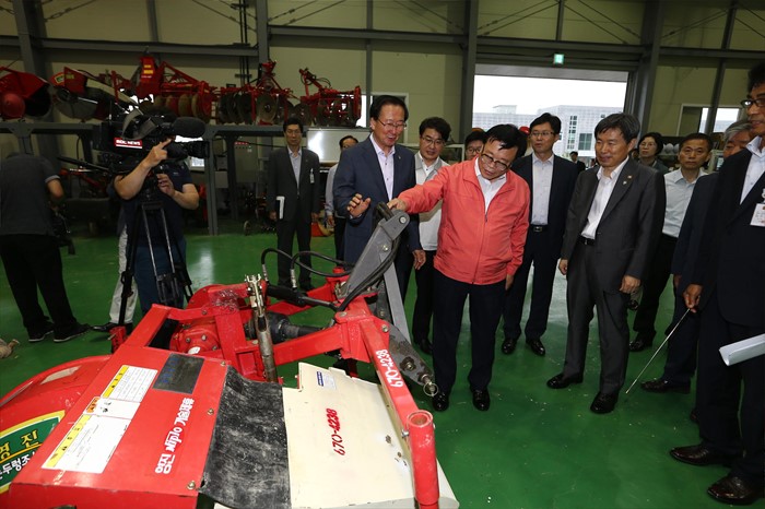 (고성=포커스뉴스) 이동필 농림축산식품부 장관이 24일 경남 고성군 농업기술센터에서 재정부 법제처장 등이 참석한 가운데 규제개혁 현장포럼이 열렸다. 이 장관이 포럼에 앞서 고성군 농업기술센터 시설을 둘러보고 있다. <사진제공=농림축산식품부>