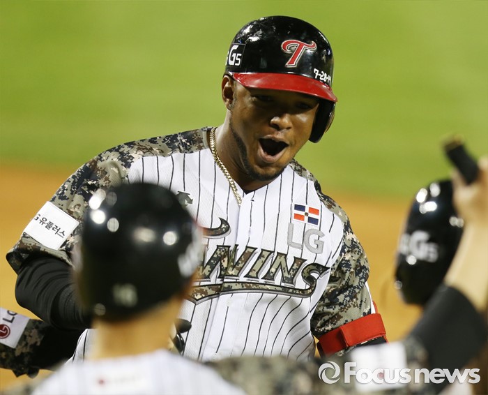 (서울=포커스뉴스) 24일 서울 잠실구장에서 열린 2016 프로야구 넥센-LG 경기 8회말 2사 1,2루에서 LG 히메네스가 역전 3점 홈런을 치고 환호하며 홈인하고 있다.