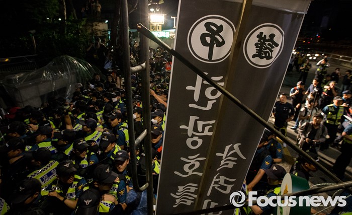 (서울=포커스뉴스) 24일 오후 서울 서초구 현대자동차 본사 앞에서 열린 '유성기업 故 한광호씨 100일ㆍ현대차 진격의 날' 집회에 참석한 노동자들과 경찰이 충돌을 빚고 있다.