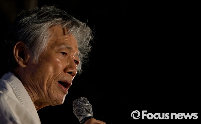 (서울=포커스뉴스) 24일 오후 서울 서초구 현대자동차 본사 앞에서 열린 '유성기업 故 한광호씨 100일ㆍ현대차 진격의 날' 집회에 참석한 백기완 통일문제연구소 소장이 현대차를 규탄하는 발언을 하고 있다.