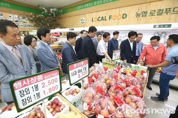 (경산=포커스뉴스) 이동필 농림축산식픔부 장관이 25일 경북 경산시 자인농협농산물산지유통센터현장을 찾아 운영현황을 점검하고 복송아 선별장, 로컬푸드 매장 등을 돌러보고 있다. <사진제공=농림축산식품부>