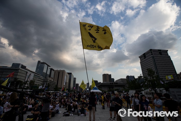 (서울=포커스뉴스) 25일 오후 서울 종로구 광화문광장에서 세월호 가족협의회 및 시민들이 참석한 가운데 '세월호 특별법 개정 촉구 범국민대회'가 열리고 있다.