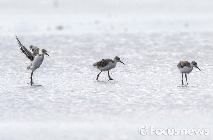 (인천=포커스뉴스)부화한지 약 보름된 장다리물떼새 어린새들이26일 인천시 영종도 매립지 습지에서 먹이를 찾고 있다. 날개가 성장하기 시작한 이들은 약 한달 후면 자유롭게 비행이 가능하다.