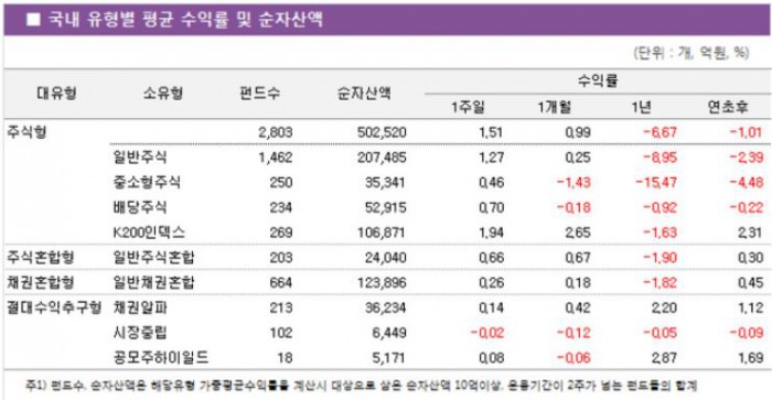 이어 일반주식펀드와 배당주식펀드도 각각 1.27%, 0.70% 상승했다. 중소형주식펀드는 0.46% 상승하는 데 그쳤다.
