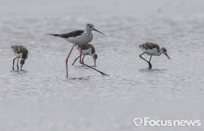 (인천=포커스뉴스)장다리물떼새가족이26일 오전 수량이갑자기 줄어든 영종도 매립지 습지에서먹이를찾아 물가로 가고 있다.