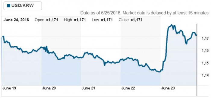 이는 브렉시트 이후 유럽 증시가 큰 폭으로 하락했으나 낙폭을 축소하고, 주요국 중앙은행의 발빠른 대책이 이어졌기 때문이란 분석이다. 생각 외로 시장의 브렉시트 불안감이 줄어 원화 가치도 하락폭을 크게 줄였다.