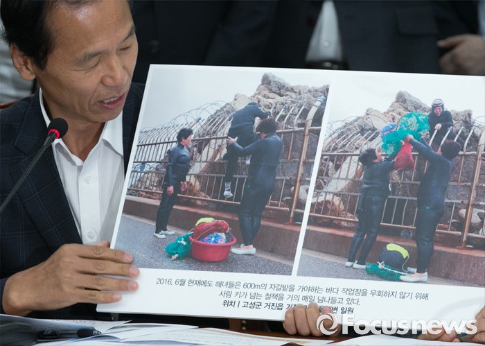 | △ 철책 관련 사진 꺼낸 최문순 강원도지사 |