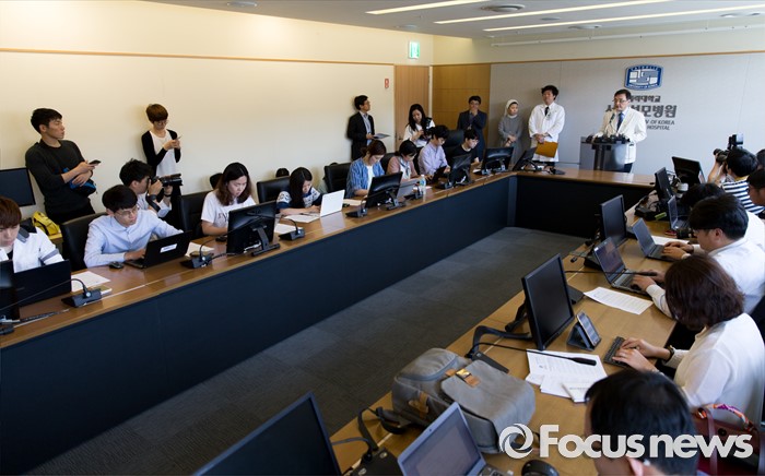 (서울=포커스뉴스) 26일 오후 서울 서초구 서울성모병원에서 장기이식센터장 양철우 교수가 탤런트 김성민 자살시도 관련 브리핑을 하고 있다.