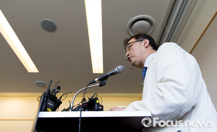 (서울=포커스뉴스) 26일 오후 서울 서초구 서울성모병원에서 장기이식센터장 양철우 교수가 탤런트 김성민 자살시도 관련 브리핑을 하고 있다.