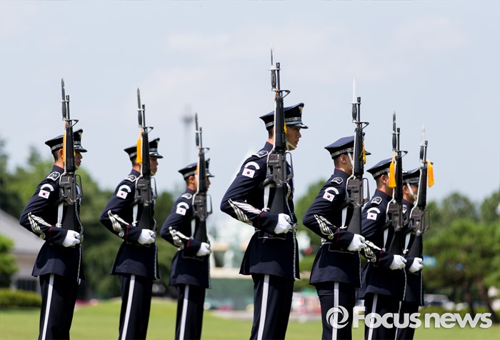 (서울=포커스뉴스) 26일 오후 서울 동작구 국립서울현충원 겨레얼마당에서 국방부 군악대와 의장대가 호국보훈의 달을 맞아 전통의장 및 퍼레이드 시범을 선보이고 있다.