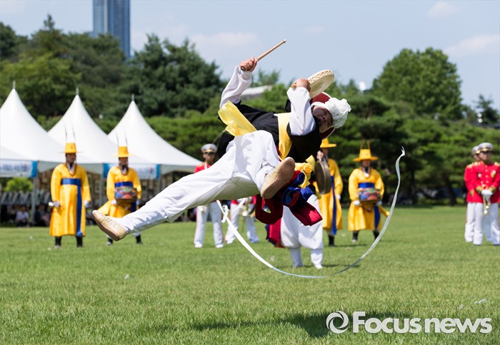(서울=포커스뉴스) 26일 오후 서울 동작구 국립서울현충원 겨레얼마당에서 국방부 군악대와 의장대가 호국보훈의 달을 맞아 전통의장 및 퍼레이드 시범을 선보이고 있다.
