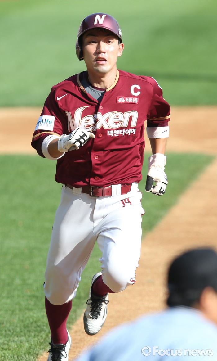 (서울=포커스뉴스) 26일 서울 잠실구장에서 열린 2016 프로야구 넥센-LG 경기 LG 1회초 우익선상으로 빠지는 2루타를 치고 진루한 넥센 서건창이 고종욱의 우전 안타때 선취 득점을 올리고 있다.