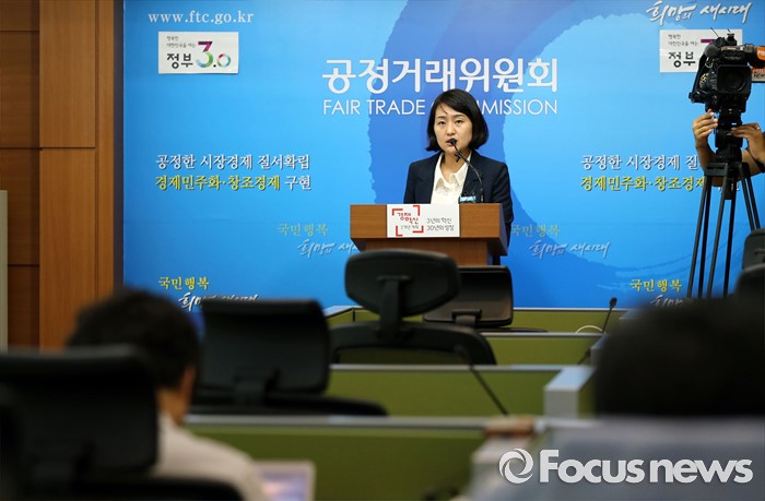 (세종=포커스뉴스) 민혜영 공정거래위원회 약관심사과장이 지난 24일 오전 세종시 정부세종청사 공정위 브리핑룸에서 소셜네트워크 서비스 카카오스토리, 페이스북, 트위터, 인스타그램의 서비스 이용약관을 심사, 8개 유형의 불공정 약관을 시정했다고 밝히고 있다.