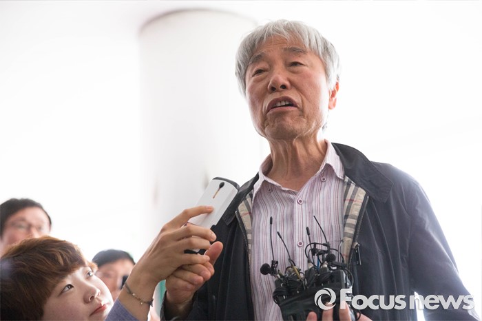 (서울=포커스뉴스) 27일 오전 이우환(80) 화백이 위작 판정이 내려진 작품 13점의 피해자 겸 참고인 신분으로 서울 중랑구 서울지방경찰청 지능범죄수사대에 출석하고 있다.