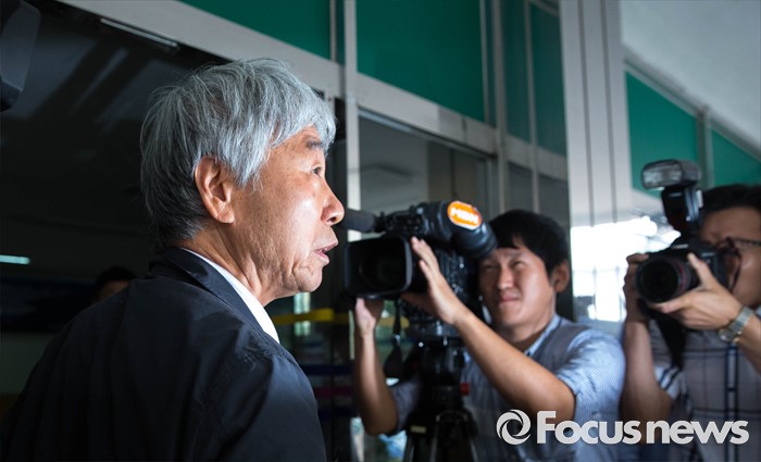 (서울=포커스뉴스) 27일 오전 이우환(80) 화백이 위작 판정이 내려진 작품 13점의 피해자 겸 참고인 신분으로 서울 중랑구 서울지방경찰청 지능범죄수사대에 출석하고 있다.