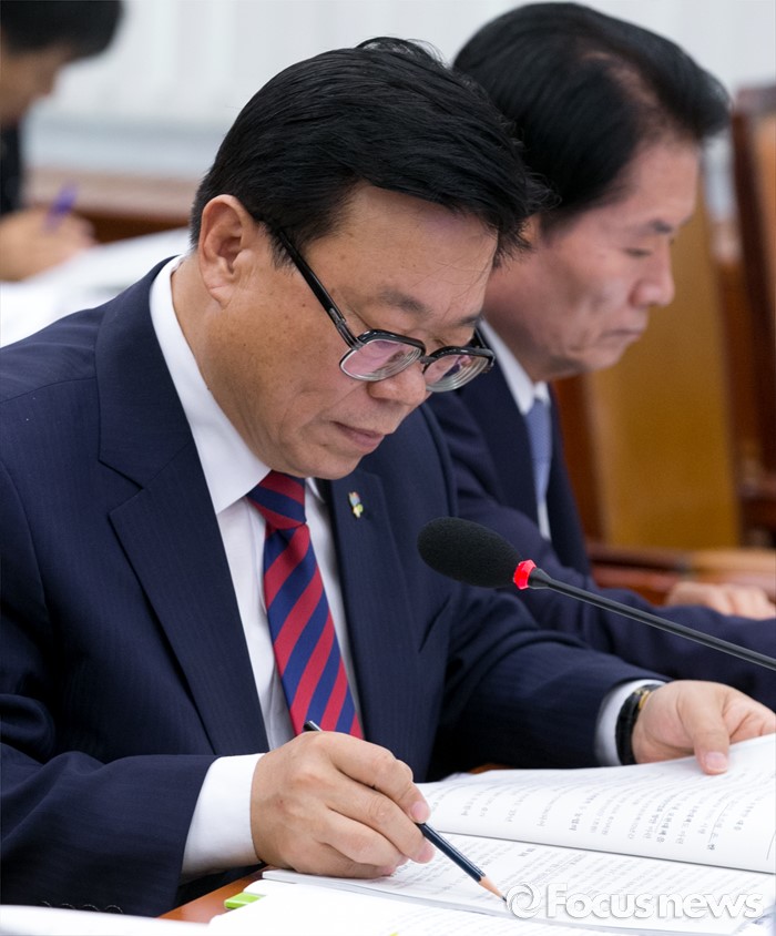 (서울=포커스뉴스) 27일 오전 서울 여의도 국회에서 열린 농림축산식품해양수산위원회 전체회의에 참석한 이동필 농림축산식품부 장관이 자료를 살펴보고 있다.