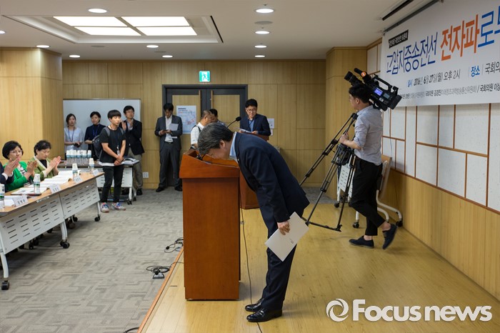 (서울=포커스뉴스) 안철수 국민의당 상임공동대표가 27일 오후 서울 여의도 국회의원회관에서 '고압지중송전선 전자파로부터 안전한가?'란 주제로 열린 토론회에 참석해 인사말을 마친 뒤 인사하고 있다.