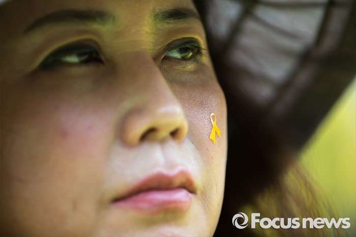 | △ '희생자 어머니 뺨에는 노란 리본이' |
