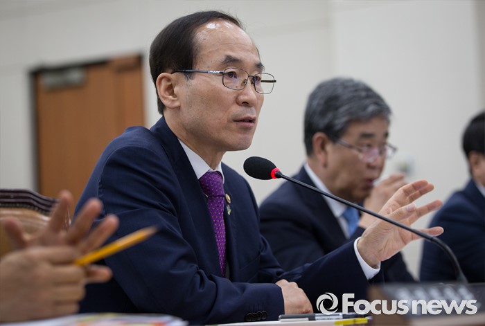 (서울=포커스뉴스) 윤성규 환경부 장관이 27일 오후 서울 여의도 국회에서 열린 환경노동위원회 전체회의에서 "건강한 사람은 미세먼지 걱정 안해도 돼”라고 발언했던 자신의 말을 해명하고 있다.