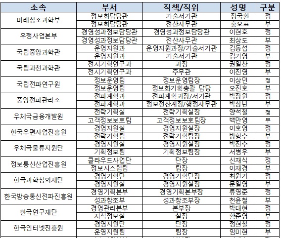 최재유 미래부 차관은 축사를 통해 “이번 미래창조 CCFO 임명은 공공부문에서 미래부가 클라우드를 우선 이용함으로써 클라우드컴퓨팅 도입이 활성화되는 계기(모멘텀)가 되고미래부 및 소속·산하 기관의 업무혁신과 클라우드 산업 발전에 큰 기여를 할 것으로 기대한다”고 밝혔다.각 기관 클라우드 퍼스트 책임관 현황(일부).<표제공=미래부>