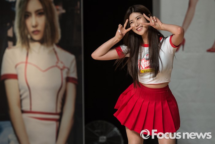 (서울=포커스뉴스) 27일 오후 서울 강남구 일지아트홀에서 열린 걸그룹 브레이브 걸스의 세번째 미니앨범 'HIGH HEELS'발표 쇼케이스에 참석한 멤버 하윤이 포토타임을 갖고 있다.