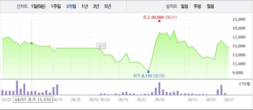 현대상선은 용선료 조정과 사채권자 채무재조정을 완료했기 때문에, 해운동맹만 가입하게 되면 채권단의 자율협약 조건을 다 갖추게 된다.주가흐름<사진출처=네이버 캡쳐>
