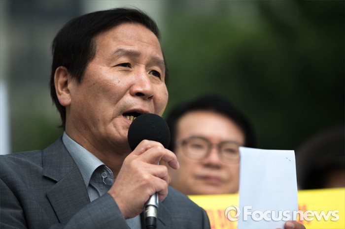(서울=포커스뉴스) 28일 오전 서울 종로구 정부서울청사 앞에서 개성공단 입주기업 비대위 관계자들이 방북 승인을 촉구하는 집회를 하고 있다.