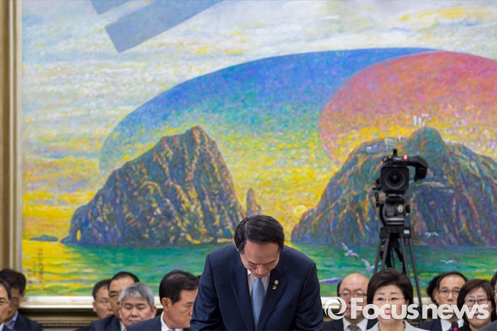 (서울=포커스뉴스) 박승춘 국가보훈처장이 28일 오전 서울 여의도 국회에서 열린 정무위원회에 참석해 야당 위원들의 퇴장 요구에 엄무보고를 멈춘 뒤 자리로 돌아가고 있다.