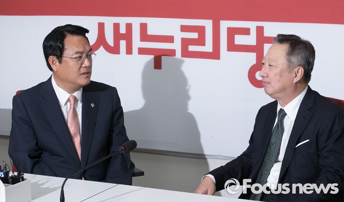 (서울=포커스뉴스) 정진석(왼쪽) 새누리당 원내대표가 28일 오전 서울 여의도 국회를 방문한 박용만 대한상공회의소 회장과 면담을 하고 있다.