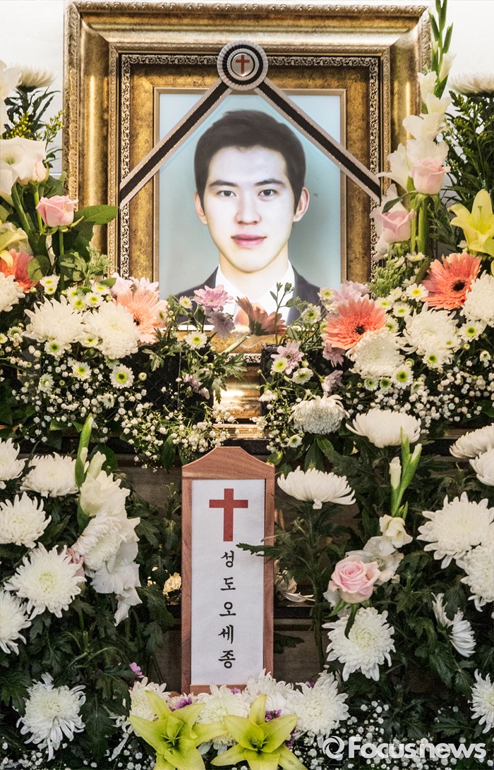 (서울=포커스뉴스) 28일 오후 서울 성동구 한양대학교병원 장례식장에 마련된 故 오세종(34) 쇼트트랙 전 국가대표 선수의 빈소.