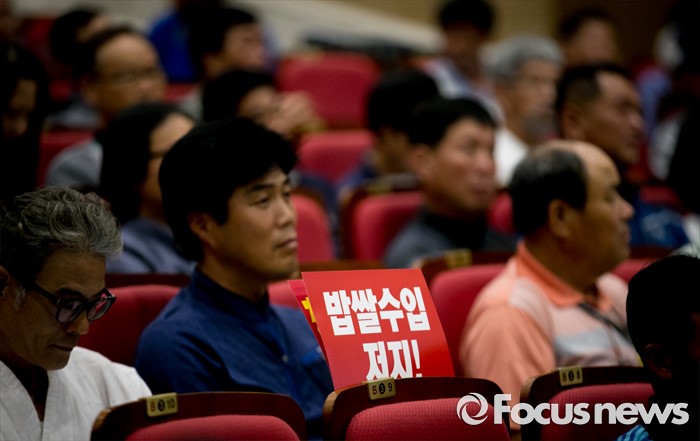 (서울=포커스뉴스) 28일 오후 서울 여의도 국회 의원회관에서 열린 20대 국회가 꼭 해야 할 농업개혁 과제 정책토론회에 한 참석자가 놓은 피켓이 보이고 있다.