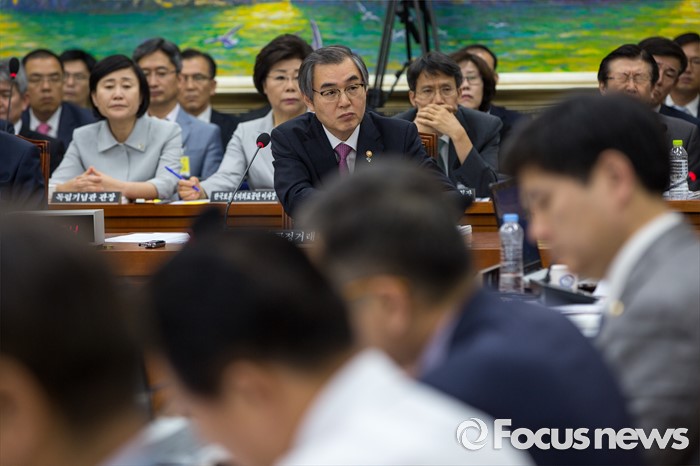 (서울=포커스뉴스) 정재찬 공정거래위원회 위원장이 28일 오후 서울 여의도 국회에서 열린 정무위원회에 참석해 질의응답 하고 있다.