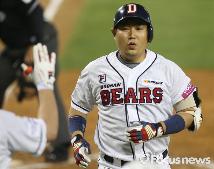 | △ 홈런치고 들어오는 두산 양의지 |