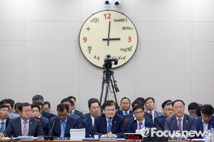 (서울=포커스뉴스) 최양희(가운데) 미래창조과학부 장관이 28일 오후 서울 여의도 국회에서 열린 미래창조과학방송통신위원회 전체회의에 참석해 질의응답 하고 있다.