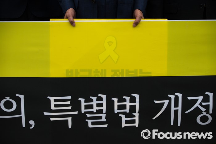 (서울=포커스뉴스) 416가족협의회와 4월16의약속국민연대가 28일 오후 서울 여의도 국회 앞에서 20대 국회, 6월 임시국회에 세월호 특별법 개정을 촉구하는 기자회견을 하고 있다.