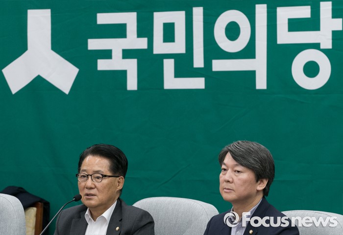 (서울=포커스뉴스) 28일 오후 서울 여의도 국회에서 리베이트 의혹에 연루된 박선숙, 김수민 의원과 왕주현 전 사무부총장 징계수위 등 논의를 위한 국민의당 의원총회를 마친 박지원 원내대표가 설명을 하고 있다. 오른쪽은 안철수 상임공동대표.