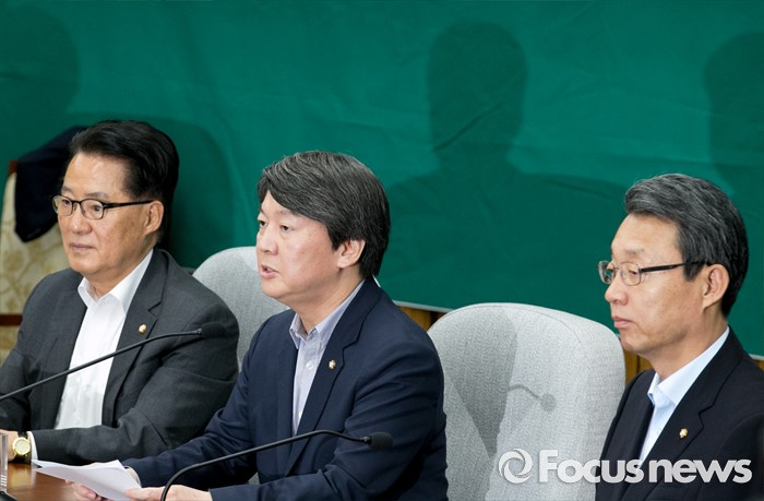 (서울=포커스뉴스) 28일 오후 서울 여의도 국회에서 리베이트 의혹에 연루된 박선숙, 김수민 의원과 왕주현 전 사무부총장 징계수위 등 논의를 위한 국민의당 의원총회를 마친 안철수(가운데) 상임공동대표가 회의 결과에 대한 브리핑을 하고 있다.