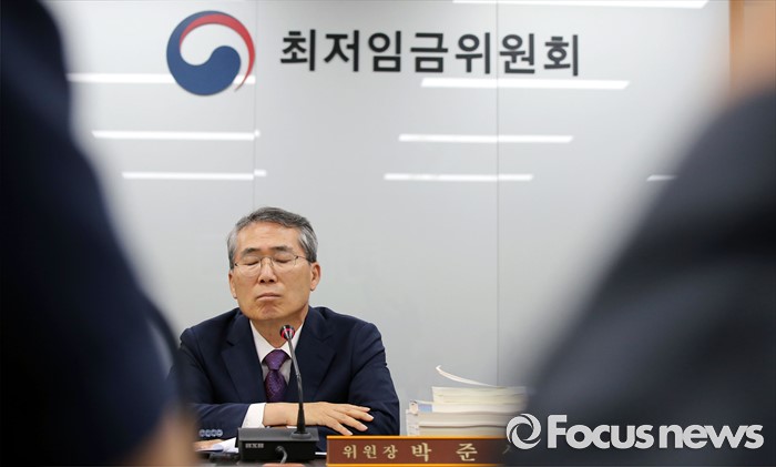 그러나 노동계는 최저임금 수준이 노사위원들 간에 크게 달라 타결이 어려울 것으로 내다보고 있다. 현재 노측 위원들은 1만원으로 인상을 주장하는 반면 사측은 올해와 같은 6030원 동결을 주장하고 있다.(서울=포커스뉴스) 2016.06.28 오장환 기자 (세종=포커스뉴스) 박준성 최저임금위원회 위원장. 2016.06.28 김기태 기자
