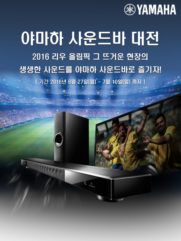 (서울=포커스뉴스) 악기음향 전문기업 야마하뮤직코리아(이하 야마하)는 다음달 10일까지 인터파크에서 '사운드바 대전'을 실시한다고 28일 밝혔다.
