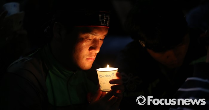 (세종=포커스뉴스) NH 농협중앙회노동조합원들이 28일 오후 세종시 정부세종청사 농림축산식품부 앞에서 농협법 개정 반대하는 1박 2일 노숙집회에서 촛불을 들고 있다.