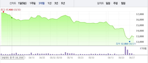 정용화는 2015년 7월 유명 연예인 영입 소식을 미리 알고 2만1000여주를 4억원에 매입했다. 이를 일주일 뒤 6억원에 팔아 2억원의 이득을 챙긴 혐의를 받고 있다.주가흐름<사진출처=네이버 캡쳐>