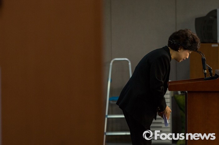 (서울=포커스뉴스) 박인숙 새누리당 의원이 29일 오전 서울 여의도 국회에서 5촌 조카를 5급 비서관에, 동서를 비서에 채용한 사실을 밝히며 국민들에게 사과 입장을 밝히는 기자회견을 마친 뒤 인사하고 있다.