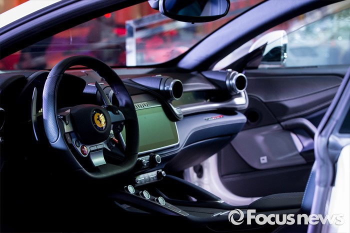 (서울=포커스뉴스) 29일 오전 서울 광진구 W서울 워커힐 호텔에서 이탈리아 스포츠카 브랜드 페라리가 'GTC4 루쏘(GTC4Lusso)'를 선보이고 있다. 사진은 신차의 실내 모습.