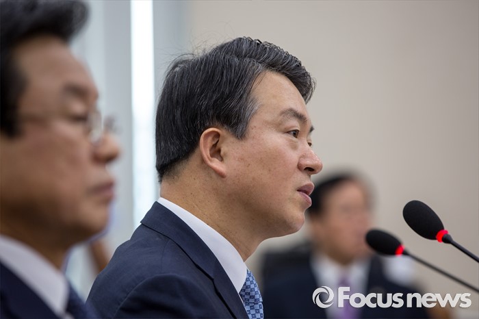 (서울=포커스뉴스) 강신명 경찰청장이 29일 오전 서울 여의도 국회에서 열린 '안전행정위원회 전체회의'에 참석해 더불어민주당 위원들에게 살수차 공개 요구에 대한 입장 설명을 하고 있다.
