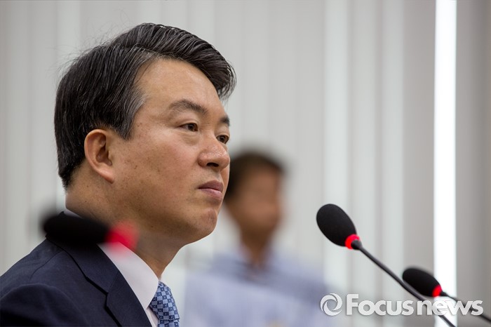 (서울=포커스뉴스) 강신명 경찰청장이 29일 오전 서울 여의도 국회에서 열린 '안전행정위원회 전체회의'에 참석해 더불어민주당 위원들에게 살수차 공개 요구를 받고 있다.