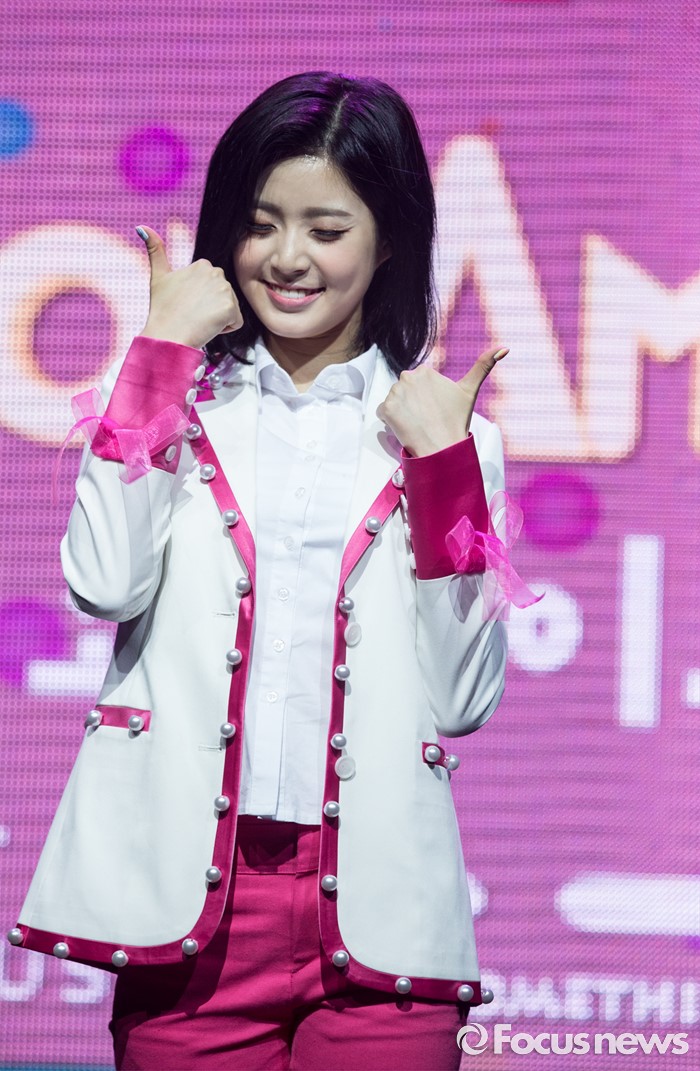 (서울=포커스뉴스) 29일 오전 서울 마포구 예스24 무브홀에서 열린 걸그룹 소나무의 미니앨범 '넘나 좋은 것' 쇼케이스에 참여한 멤버 디애나가 포토타임을 갖고 있다.
