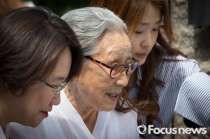 (서울=포커스뉴스) 29일 오전 서울 중구 예장동 옛 통감관저 터에서 열린 일본군 위안부 피해자 추모공원 '기억의 터' 기공식에 김복동 할머니가 참석하고 있다.